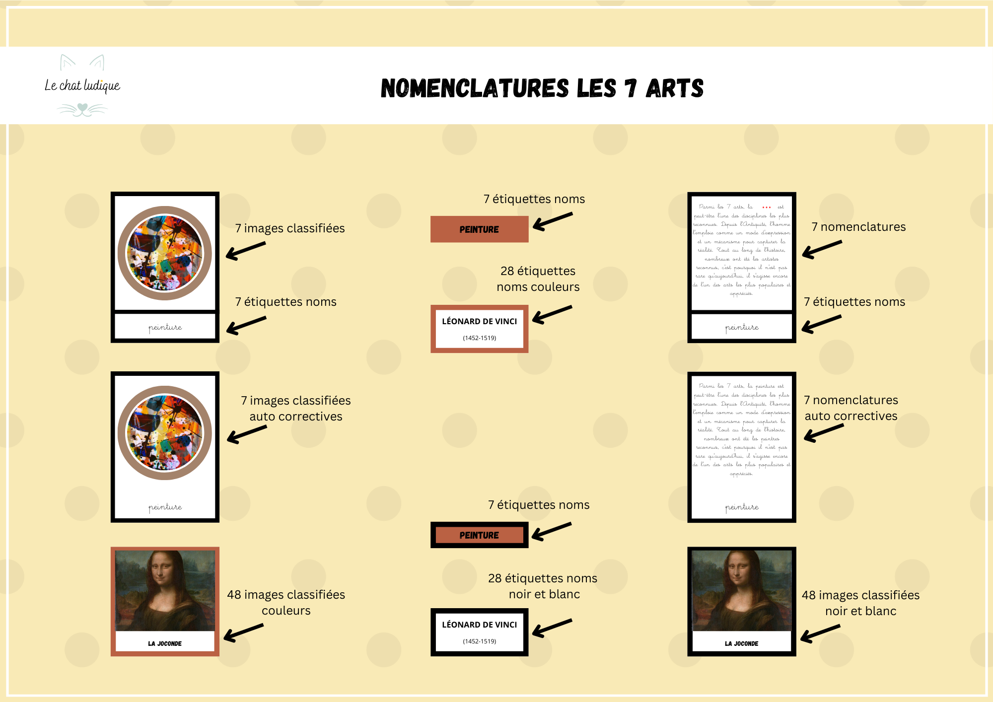 Inspiré de la pédagogie Montessori, ce support imprimable permet de reconnaître, nommer et comprendre les grandes disciplines artistiques à travers des cartes visuelles claires et pédagogiques.