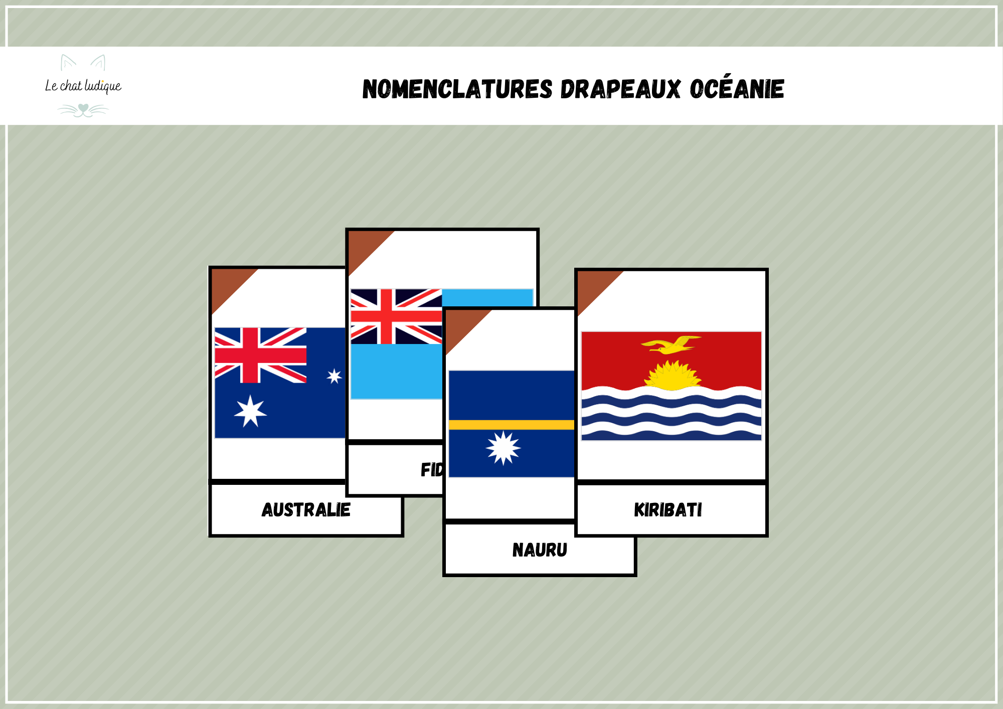 Découvrez les drapeaux des pays d’Océanie de manière ludique et éducative avec notre ressource « Drapeaux d’Océanie – Images classifiées Montessori et nomenclatures » ! Idéal pour les enfants passionnés de géographie et curieux du monde, ce support imprimable permet de mémoriser facilement les drapeaux et les pays associés, grâce à des activités interactives et visuelles.