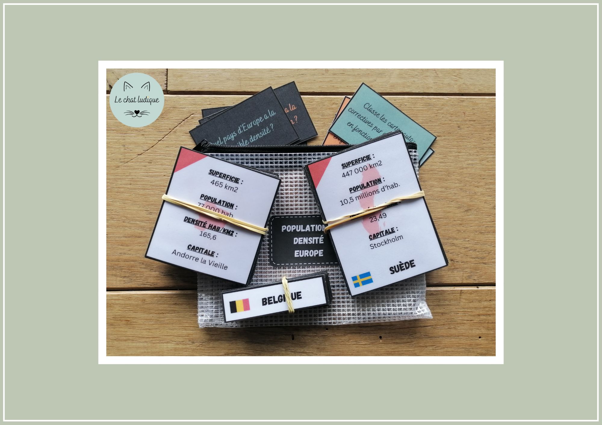 Ce support imprimable permet aux enfants de comprendre les notions de population et de densité de manière claire et visuelle à travers des cartes classées par pays européens.